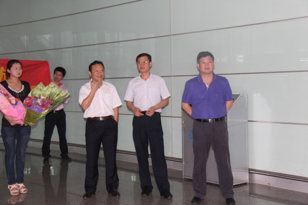 ——公司董事長、總經理王元旦等到機場迎接