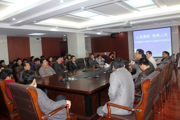 在黨中央和國務院的堅強領導下,全國各族人民緊急行動起來,積極支援災區抗震救災,向災區人民提供各種援助。我公司根據省水利廳黨委的部署,積極行動起來,時刻關注災區情況,隨時準備投入救災援助工作。同時,由公司黨委、工會在全公司范圍內組織開展了為四川雅安地震災區捐款活動