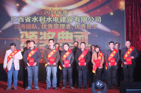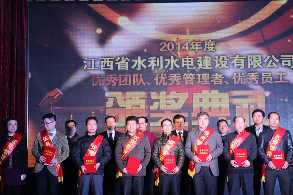 隨后,公司總經理徐洪良宣讀了2014年優秀表彰決定,并與公司領導班子一起,為雙河二期項目部等6個優秀團隊、肖凱等10位優秀管理者和周家煌等23位優秀員工進行頒獎。徐總要求,希望受到表彰的先進集體和個人積極進取、再接再厲,以更加昂揚的斗志投入到今后的工作中,創造出更加輝煌的成績;希望各單位和廣大員工以優秀團隊和先進個人為榜樣,加強學習,開拓創新,銳意進取,為江西水建燦爛的明天而努力工作!