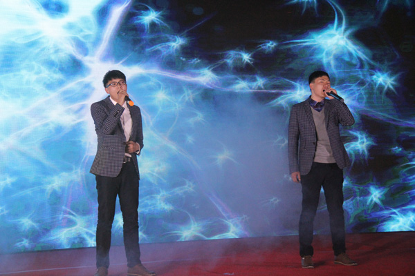 鮮紅的綢帶,迎來明媚的新春;火紅的笑臉,洋溢著節日的喜慶。隨后的文藝匯演在大合唱《新時代的水建人》中拉開帷幕,舞蹈,歌曲聯唱,雙簧,魔術等文藝節目先后上場,整場演出精彩絕倫,高潮迭起,掌聲和歡笑聲貫穿全場,現場成了一片歡樂的海洋。最后,公司高管登臺和大家一起同唱《團結就是力量》,一首《團結就是力量》把年會推向了高潮。團結是我們的力量之源,團結是企業騰飛的支點。同心山成玉,協力土變金。我們同是一顆心,同是一條根,同是水建人,讓我們團結起來,肩并著肩,手牽著手,用比鐵還硬、比鋼還強的磅礴力量,共同譜寫公司改革創新加快發展的嶄新篇章。